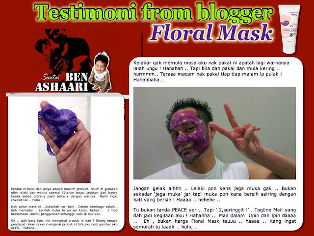 Haa sekarang kan dah moden,floral mask by dian pixy,nama pengasas pun dah comel lote,inikan pula maskernya berwarna ungu tu,mesti tak pernah jumpa masker berwarna ungu ni kan,sangat efektif menanggalkan bintik hitam dan bintik putih di wajah,tak perlu risau lagi kulit sakit2 kerana masker ini tidak menyakitkan wajah anda apabila ditarik,